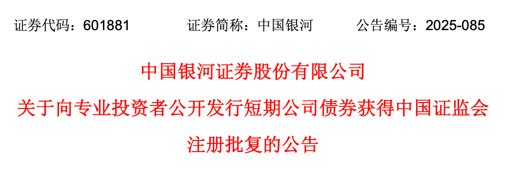 10月14日晚间,中国银河发布公告称,公司近日收到中国证监会出具的《关于同意中国银河证券股份有限公司向专业投资者公开发行短期公司债券注册的批复》。