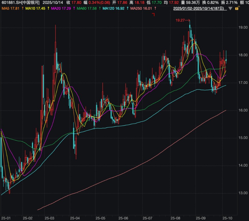 10月14日,中国银河股价上涨0.34%,报17.80元/股,该股年初至今涨幅为18.23%。